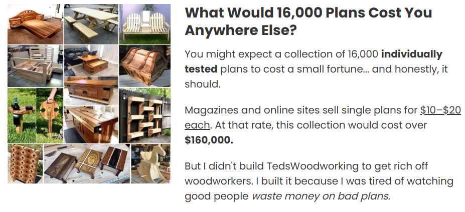 Ted’s Woodworking was developed to be simple, allowing you to go from beginner or mere woodworking enthusiast to professional if you dedicate yourself and put all the acquired knowledge into practice. With it, you can create everything from simple projects to more complex ones easily and with simple tools. You don’t need anything too sophisticated to start a new chapter in your life.